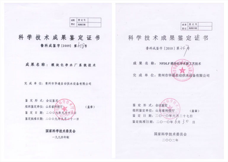 公司自主研发的“模块化净水厂系统技术”及“NFDLF模块化净水新工艺技术”通过技术鉴定,其中“模块化净水厂系统技术”的集成技术及“NFDLF模块化净水新工艺技术”的清水集流系统技术、斜管沉淀工艺的即时转换技术、出水控制系统及独立反冲洗系统技术均达到国际领先水平;