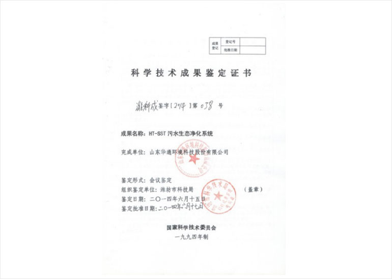 自主研发的“HT-SST污水生态净化系统”通过鉴定达到国际先进水平。