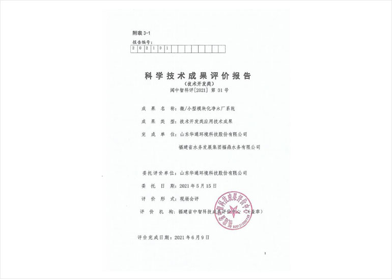 公司研发的“微/小型模块化净水厂系统”取得多项自主知识产权,经专家鉴定,其核心技术达到国际领先水平。